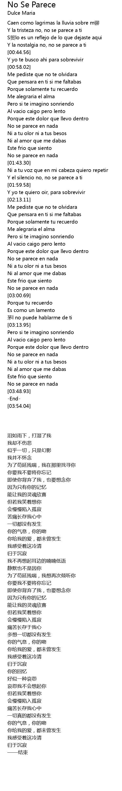| [01:52.90] | Y el silencio no, no se parece a ti |