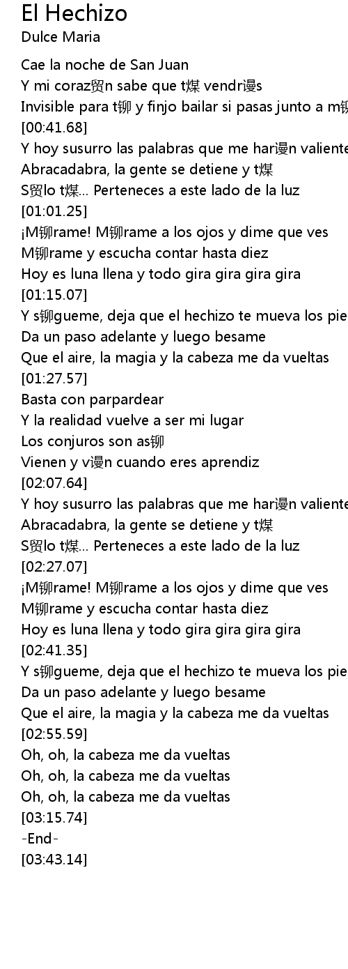 | [02:41.61] | Y s mao gueme, deja que el hechizo te mueva los pies |