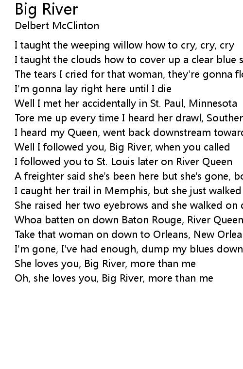 The tears I cried for that woman, they're gonna flood you, Big River |