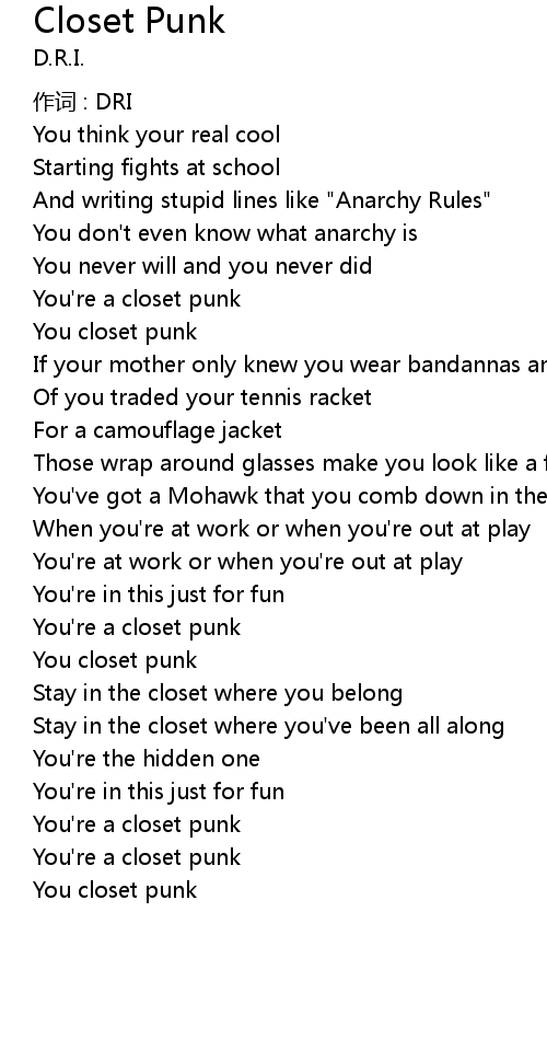 | 歌曲 | Closet Punk |