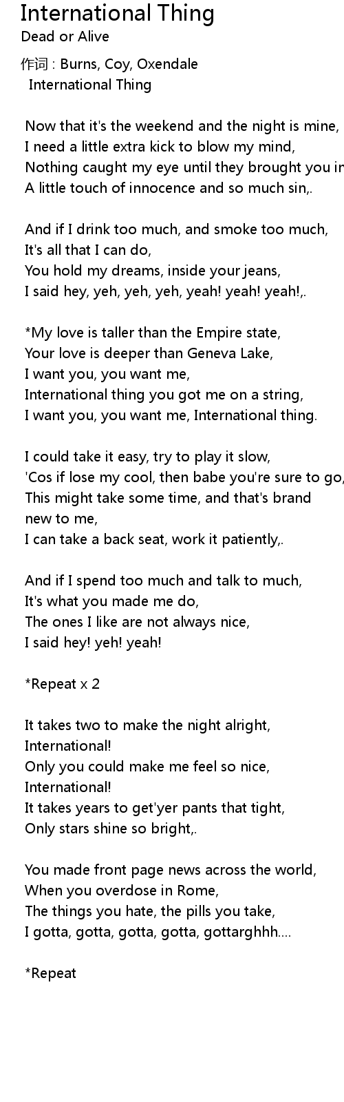 | 歌曲 | International Thing |