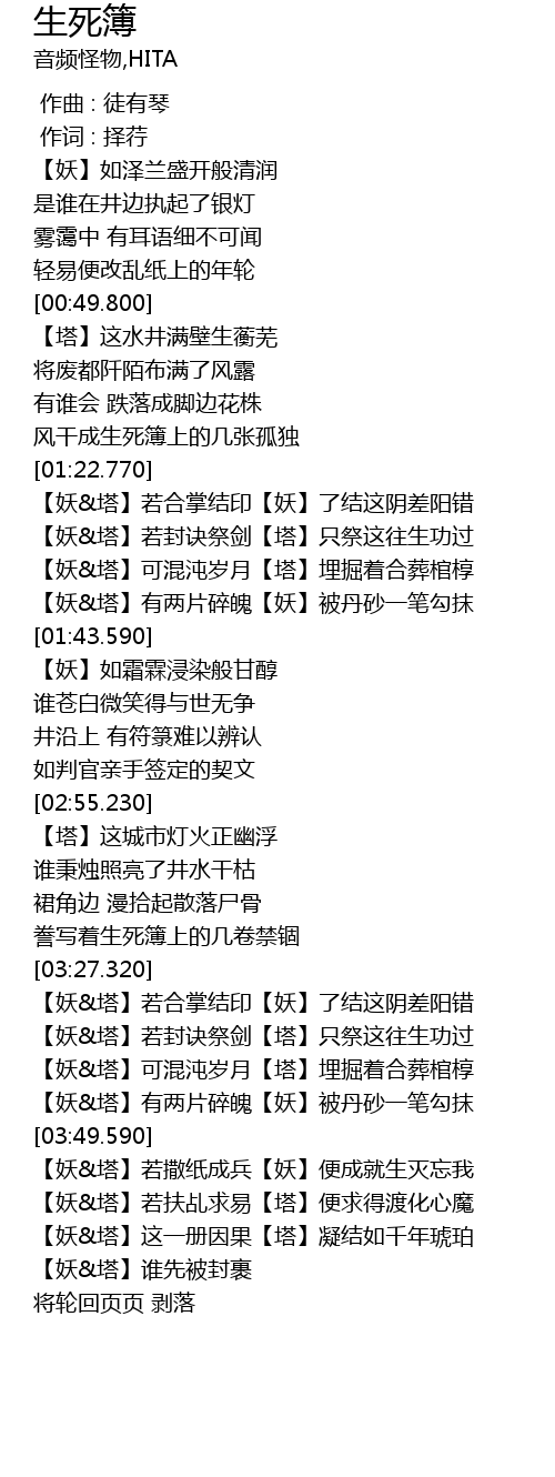 | [03:20.829] | 誊写着生死簿上的几卷禁锢 |