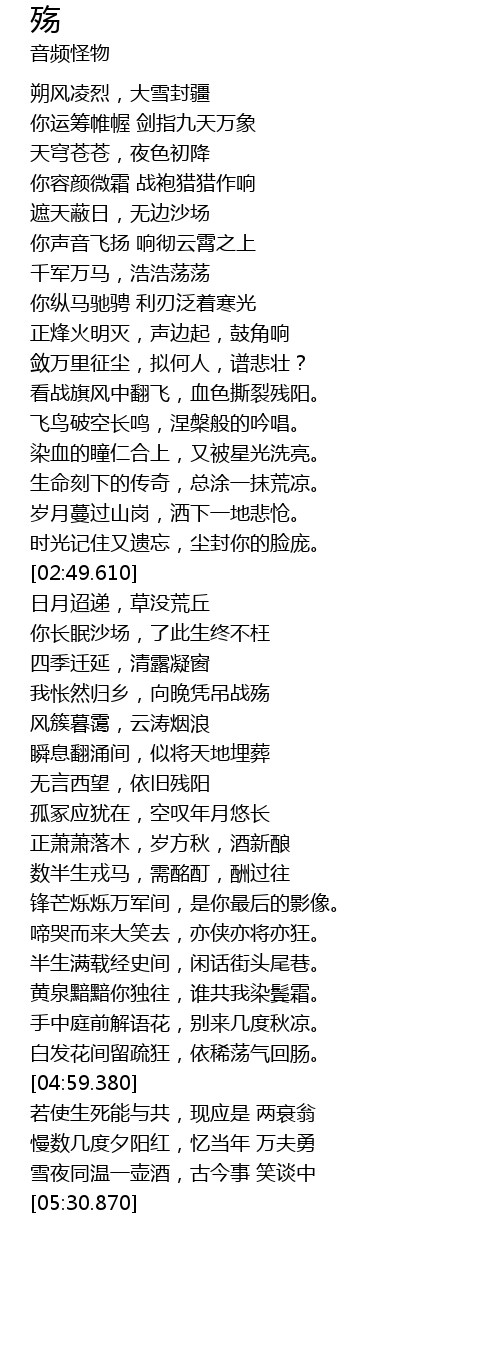 | [03:25.100] | 你长眠沙场,了此生终不枉 |