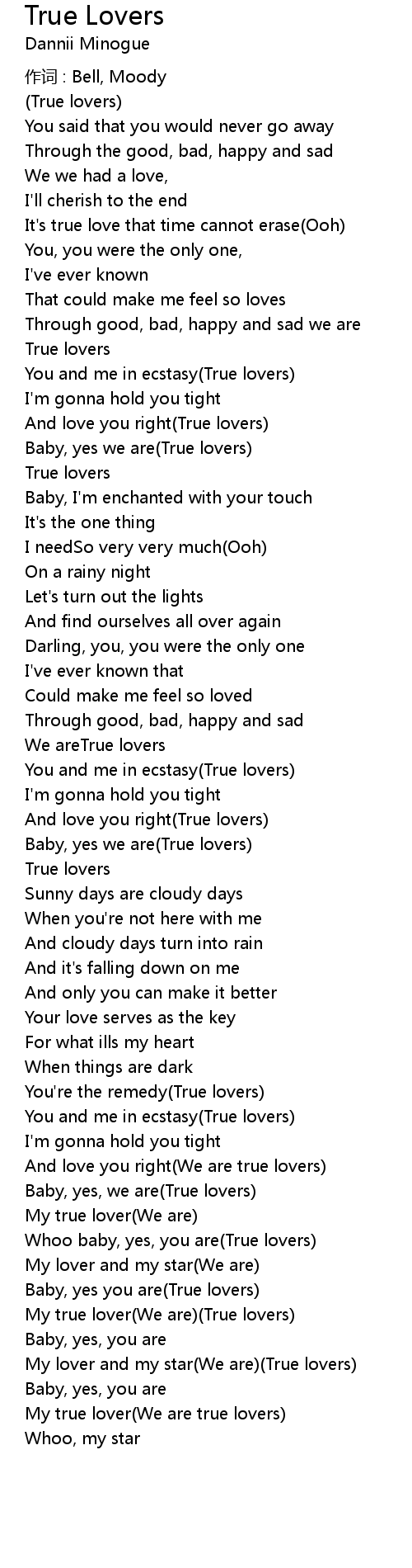 | And love you right We are true lovers | |
