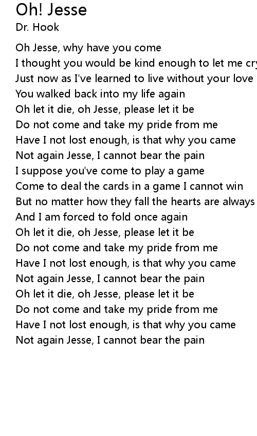 Oh Jesse, why have you come |