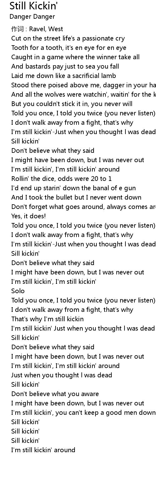 | [01:58.992] | I' m still kickin', I' m still kickin' |