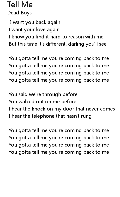You gotta tell me you're coming back to me
