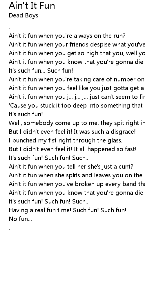 Ain't it fun when you've broken up every band that you've ever begun? |