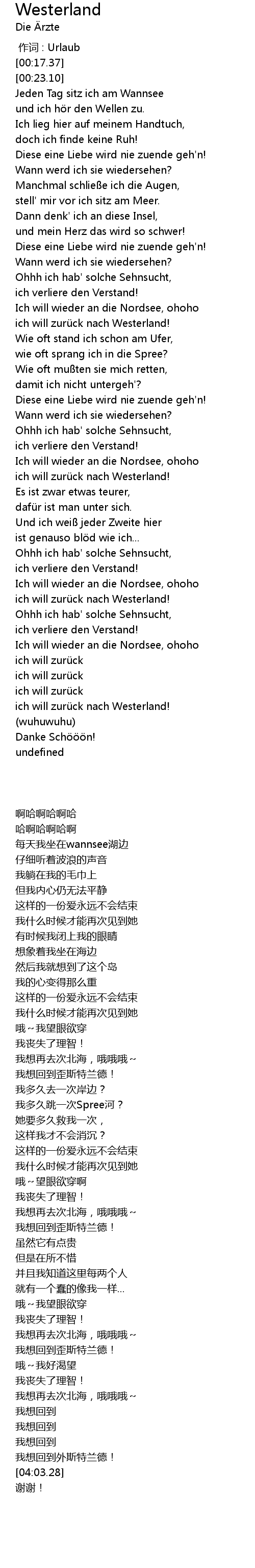 | [03:26.51] | ich will zurü ck nach Westerland! |