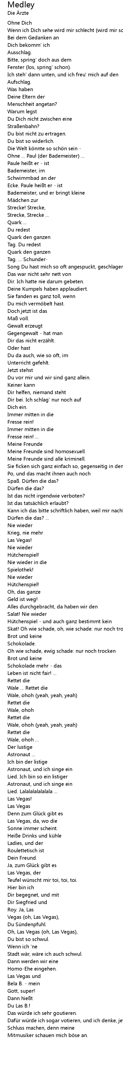 | Wenn ich Dich sehe wird mir schlecht wird mir so schlecht. | |
