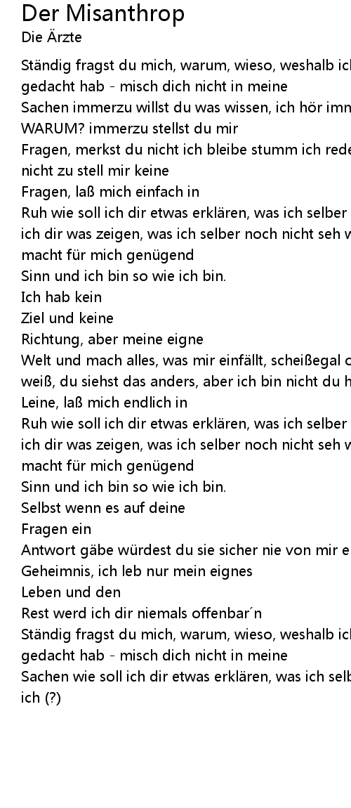 | St ndig fragst du mich, warum, wieso, weshalb ich etwas mache was ich mir dabei gedacht hab misch dich nicht in meine | |