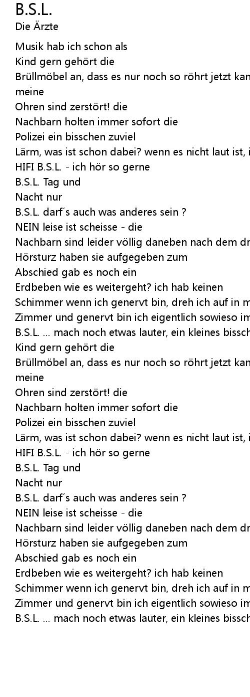 | B.S.L. ... mach noch etwas lauter, ein kleines bisschen lauter... schon als | |