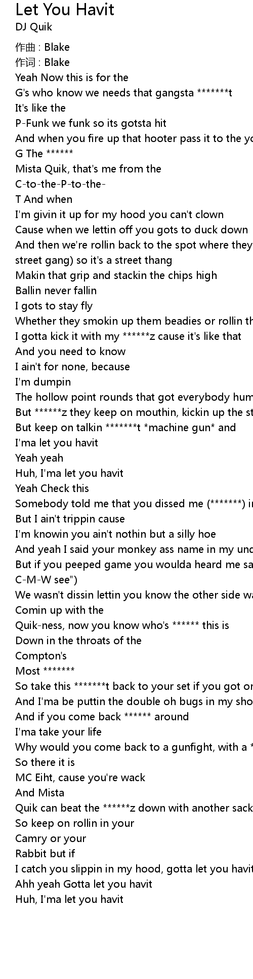 | And then we're rollin back to the spot where they hang (Westside fo'hundred street gang) so it's a street thang | |