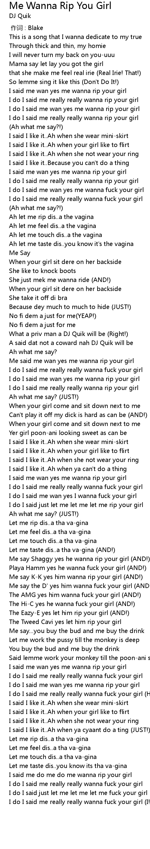 | [00:46.043] | I do I said me wan yes me wanna fuck your girl |