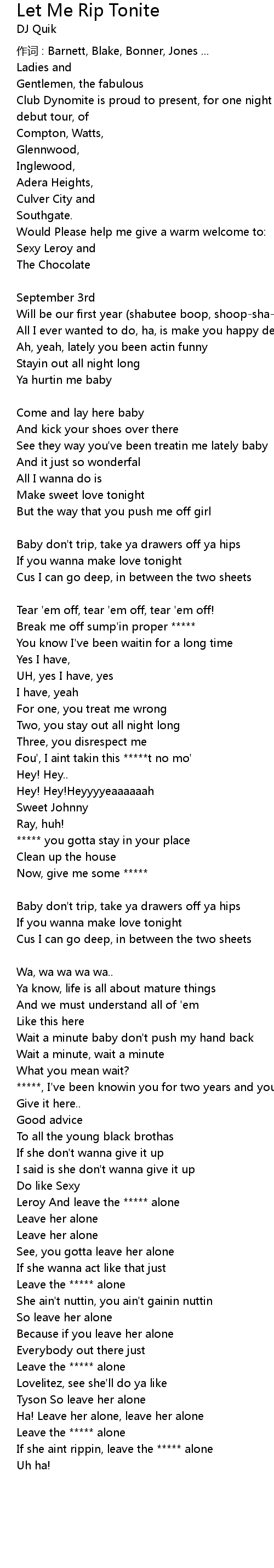 | 歌曲 | Let Me Rip Tonite |