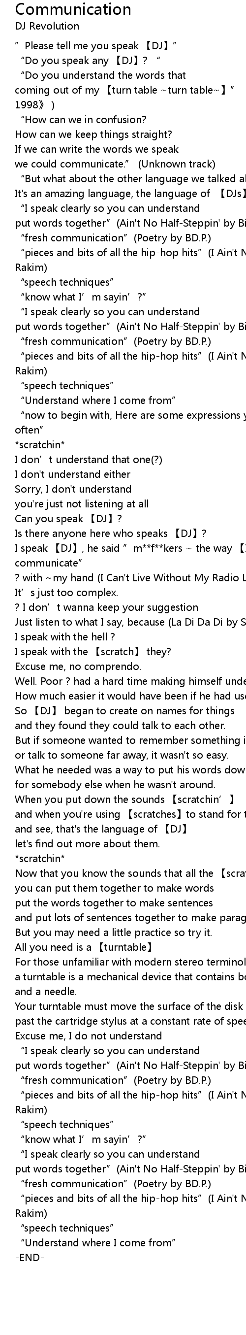 | [01:37.430] | I speak 【DJ】, he said ”m**f**kers ~ the way 【I】 communicate” |