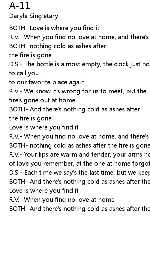 BOTH- And there's nothing cold as ashes after the fire is gone |