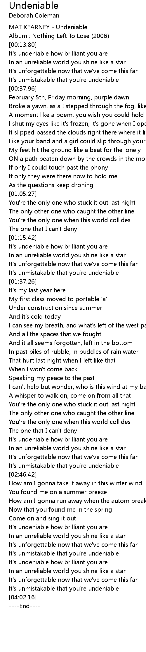 [00:09.77] MAT KEARNEY - Undeniable