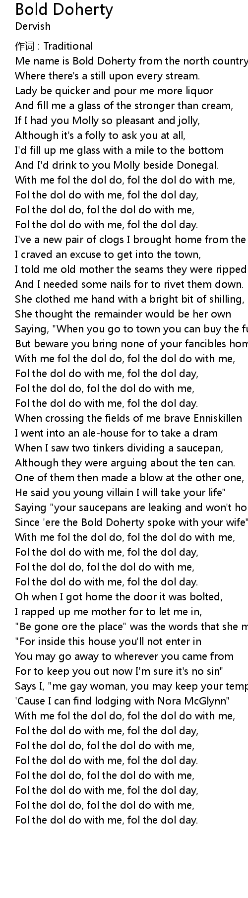 | Since 'ere the Bold Doherty spoke with your wife" | |