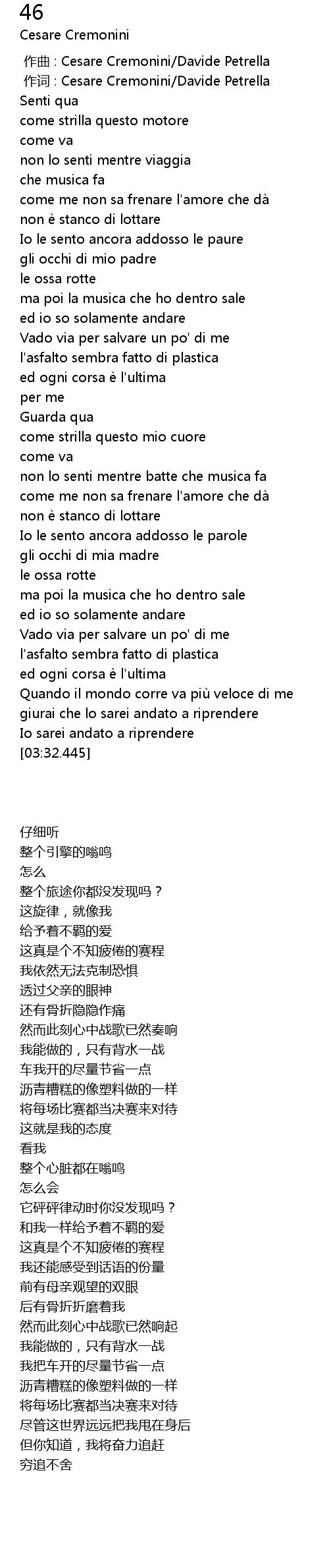 | [00:01.000] | 作词 : Cesare Cremonini/Davide Petrella |