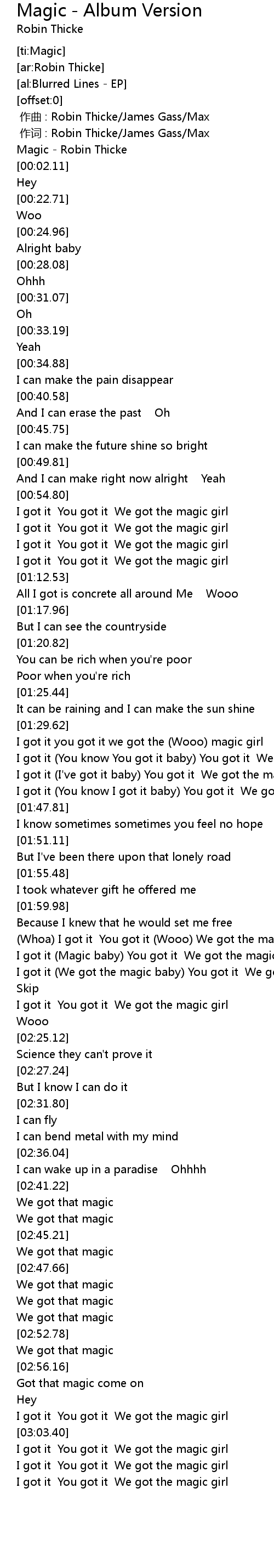 | [00:01.05] | Magic - Robin Thicke |