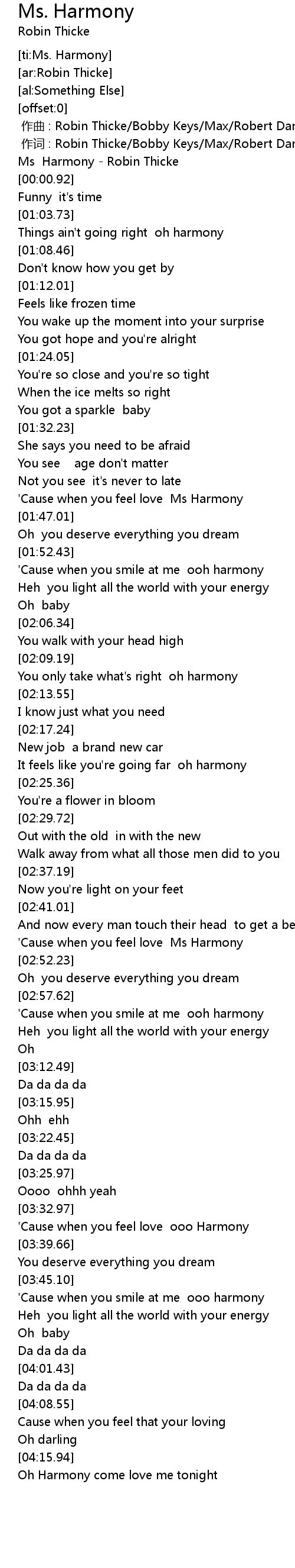| [00:00.14] | Ms Harmony - Robin Thicke |