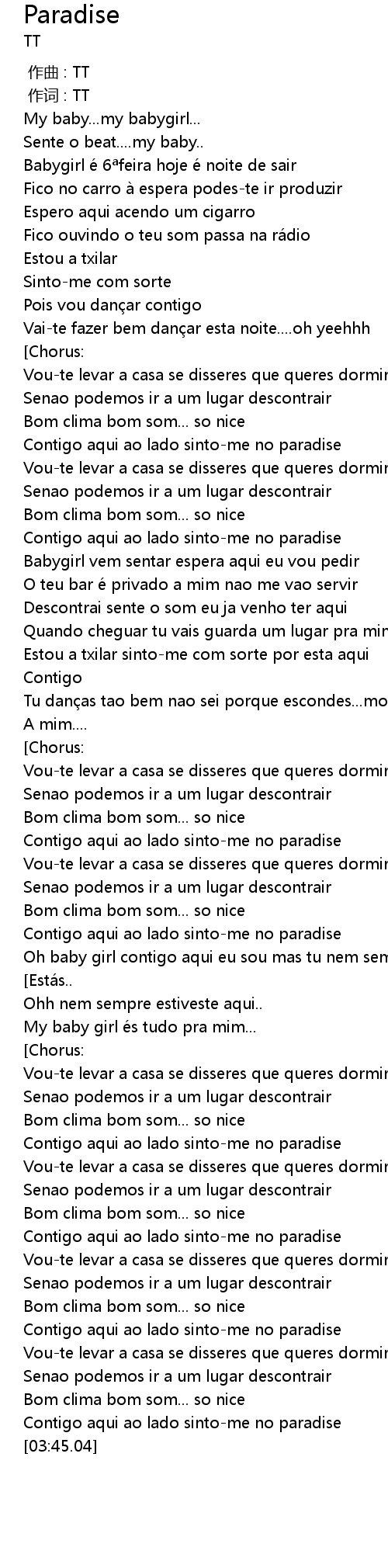 | [02:24.35] | Contigo aqui ao lado sinto-me no paradise |
