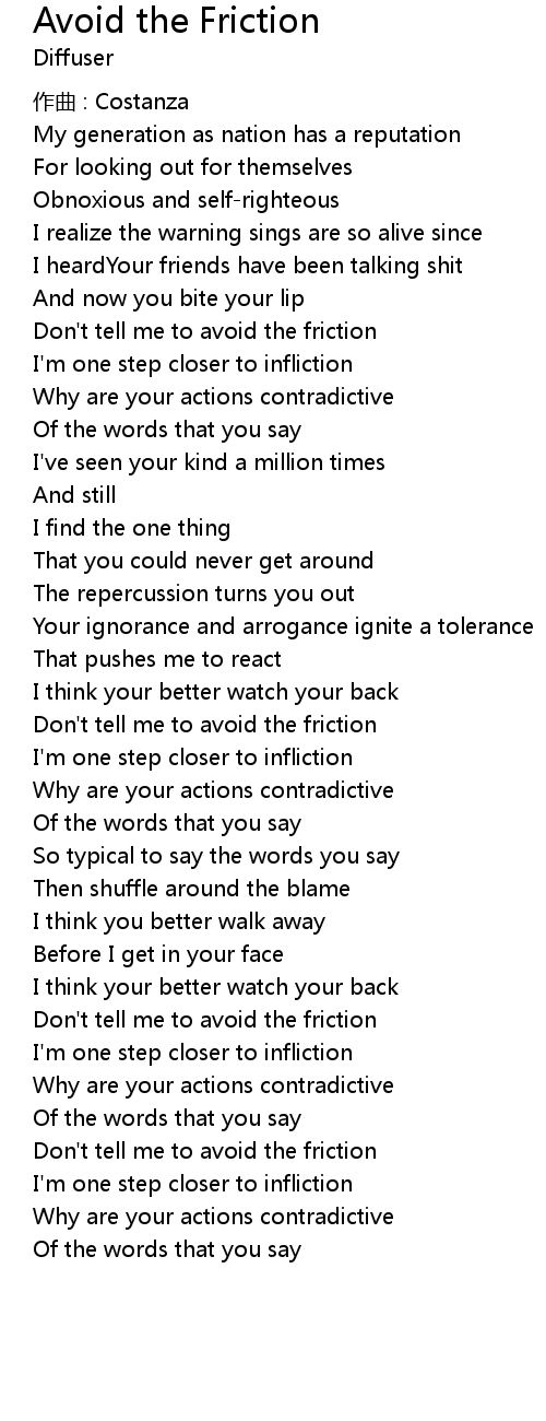 | 歌曲 | Avoid the Friction |