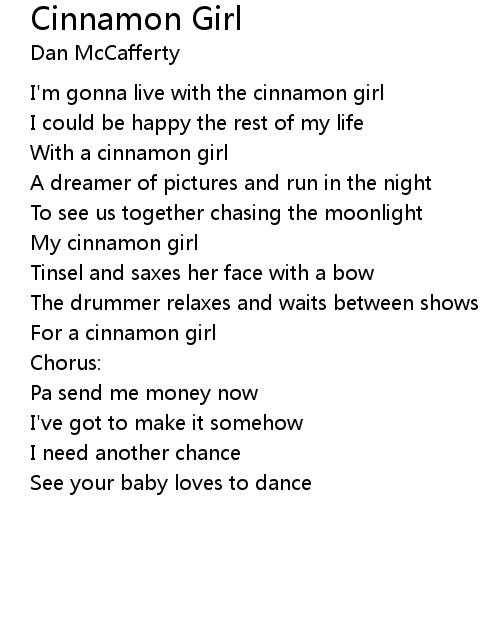 | I'm gonna live with the cinnamon girl | |