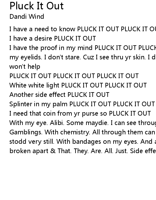 I have a need to know PLUCK IT OUT PLUCK IT OUT |