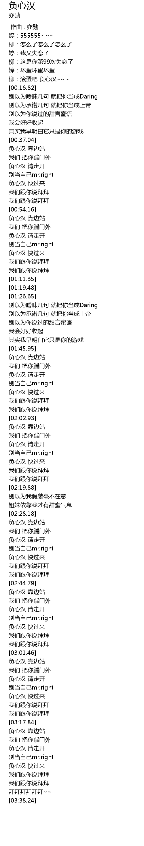 | [00:15.27] | 柳:滚蛋吧 负心汉~~~ |