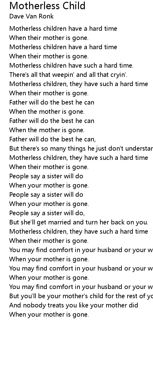 Motherless children, they have such a hard time |