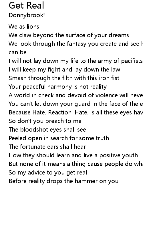 So my advice to you get real |