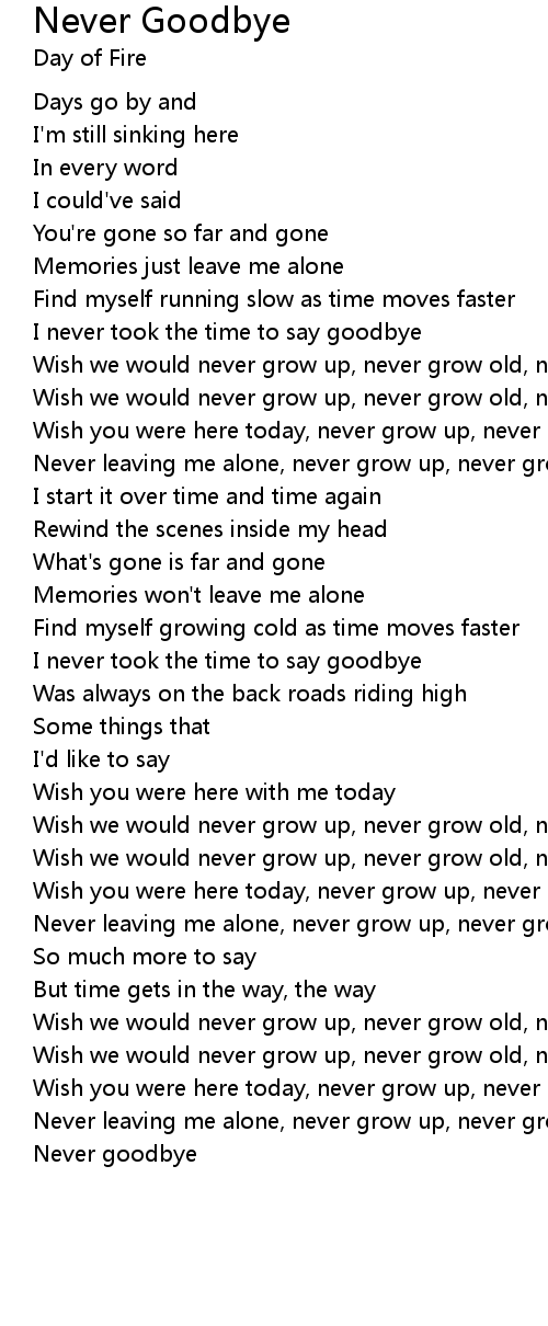 Wish we would never grow up, never grow old, never goodbye |