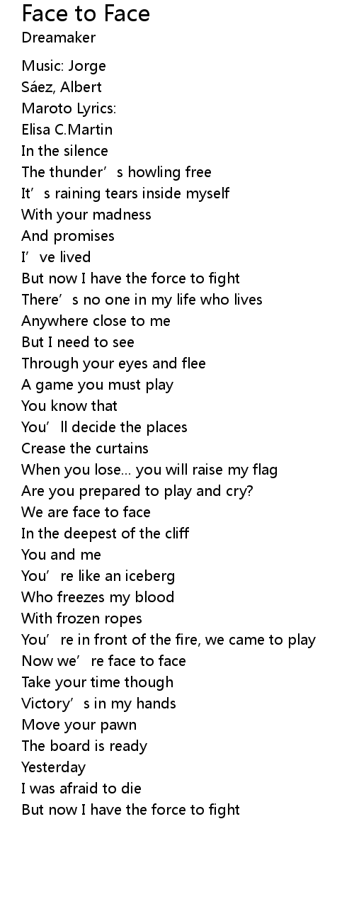 | Now we' re face to face | |