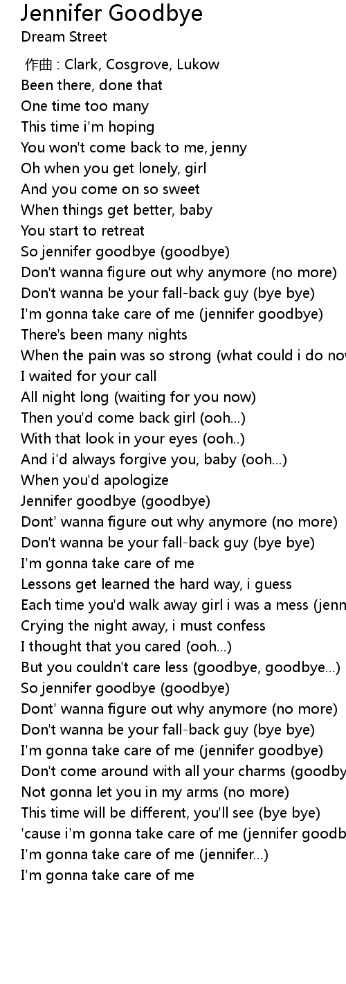 | [03:01.47] | So jennifer goodbye (goodbye) |