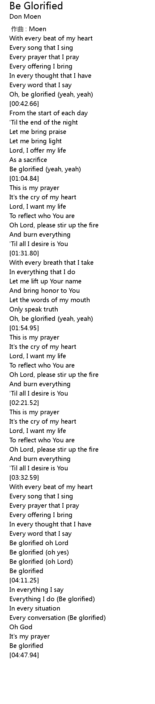| [04:01.42] | Be glorified (oh Lord) |