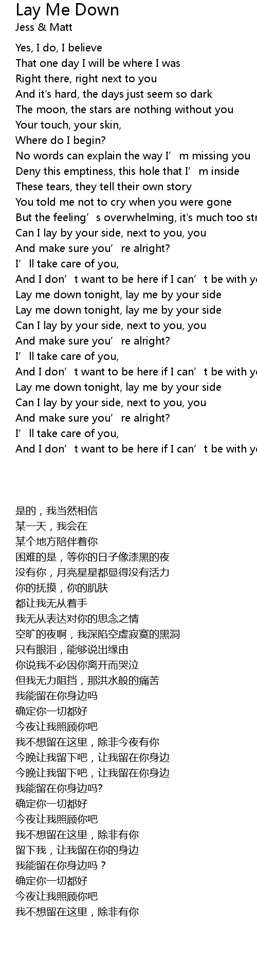 | 歌曲 | Lay Me Down |