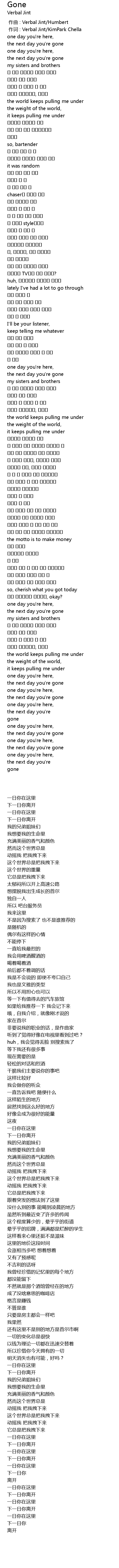| [00:01.000] | 作词 : Verbal Jint/KimPark Chella |
