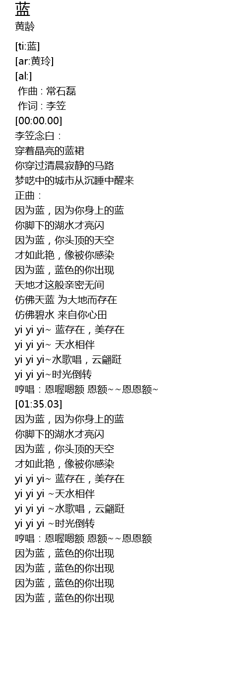 | [01:42.13] | 因为蓝,因为你身上的蓝 |