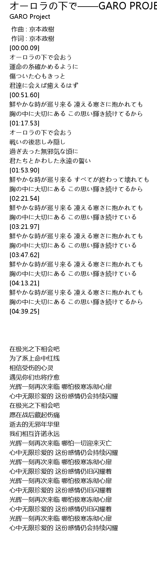 | [01:30.57] | オーロラの下で会おう |