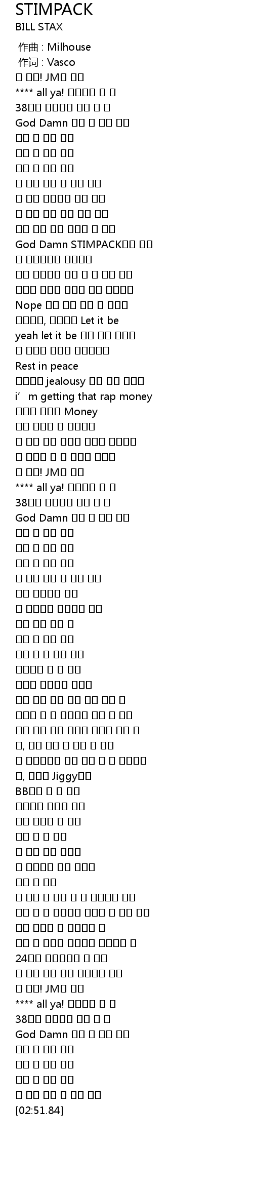 | [02:38.23] | God Damn 스팀 팩 맞은 상태 |