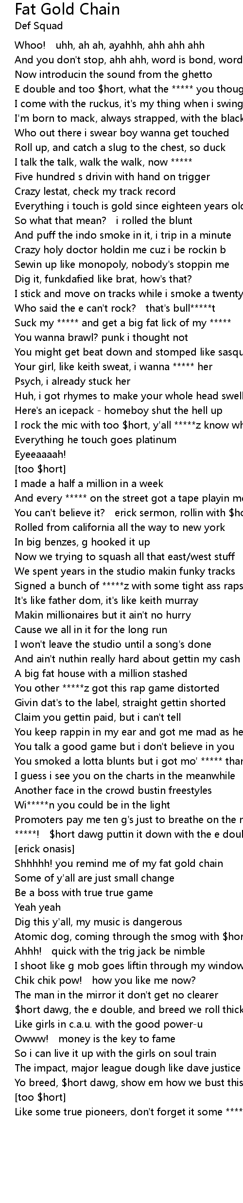 | Shhhhh! you remind me of my fat gold chain | |