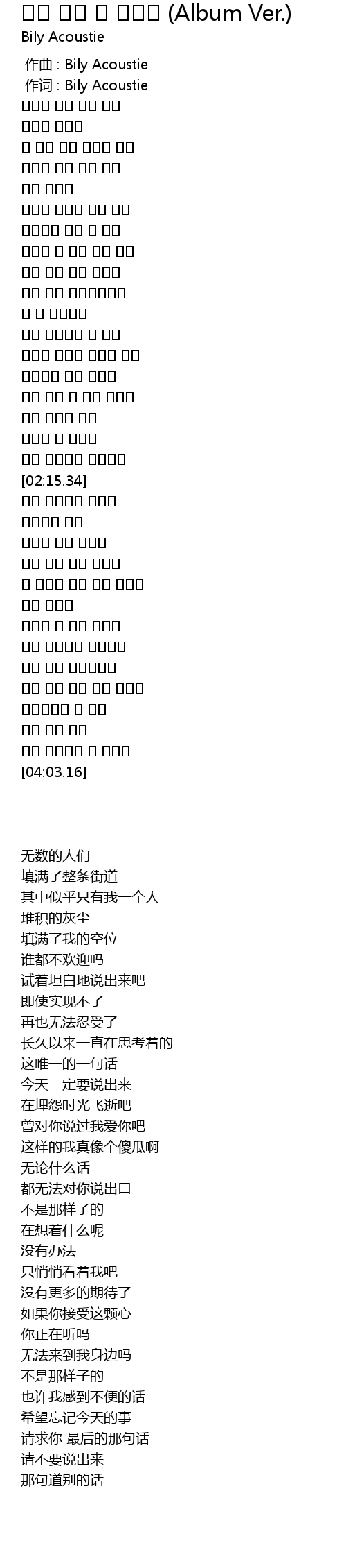 作词 : Bily Acoustie |