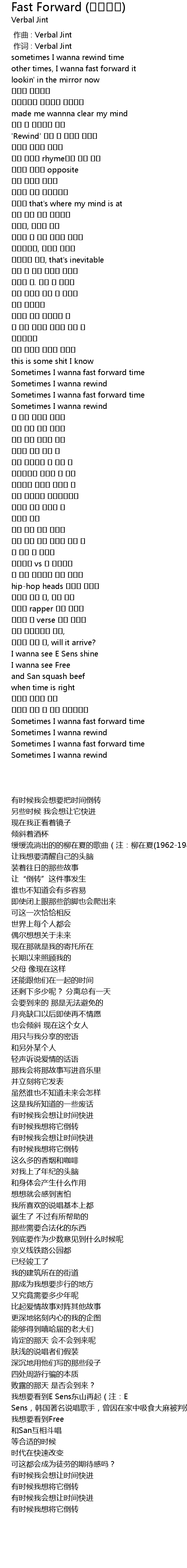 | [01:56.880] | 我想要看到E Sens东山再起(注:E Sens,韩国著名说唱歌手,曾因在家中吸食大麻被判处一年有期徒刑) |