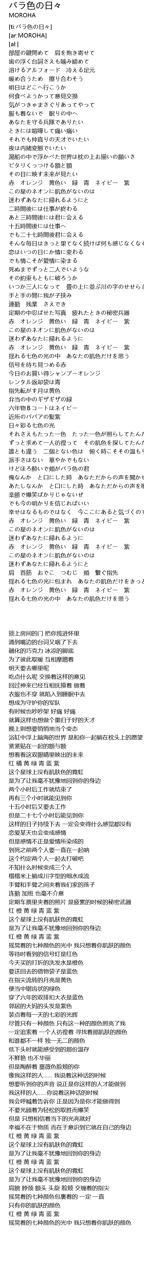 | [05:09.18] | 摇晃着的七种颜色包裹着的 一定 一直 只有你的肌肤的颜色 |
