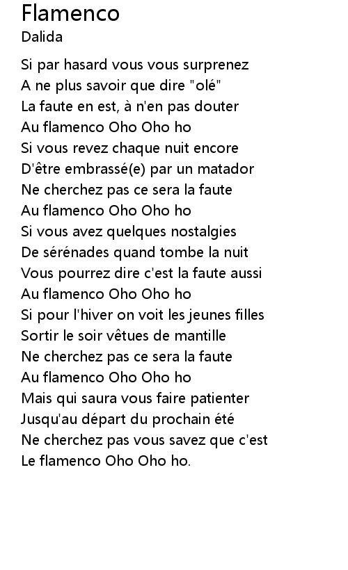 | Le flamenco Oho Oho ho. |