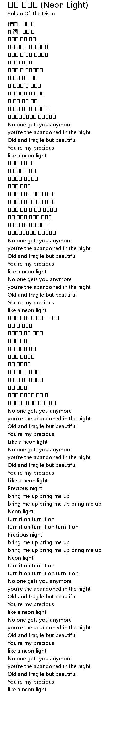 | 歌曲 | 니온 라이트 (Neon Light) |