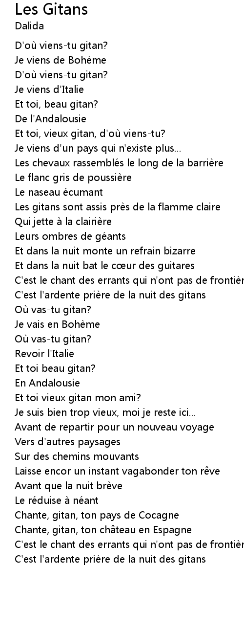 | Et toi, vieux gitan, d' ou vienstu? | |
