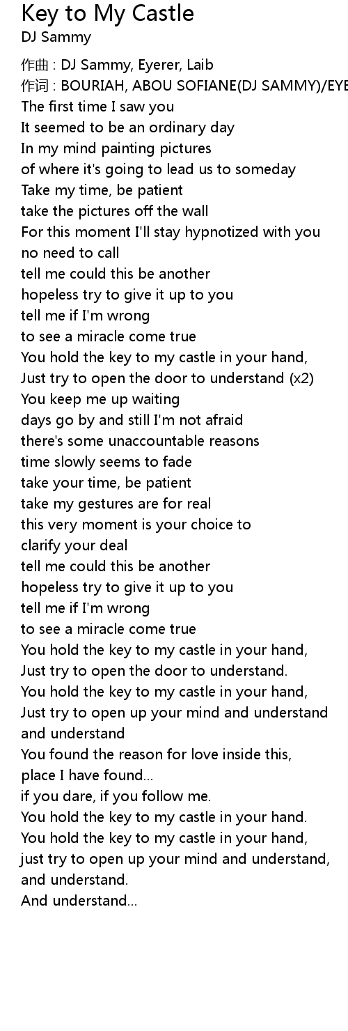 | You hold the key to my castle in your hand. | |